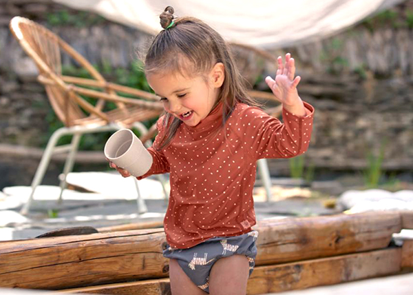Il costume contenitivo Swim Diaper di Lässig, ad esempio, cattura l'umidità e la e la disperde all’esterno, così la pelle del tuo bimbo resta asciutta, e protetta grazie alla barriera UV di 50+.